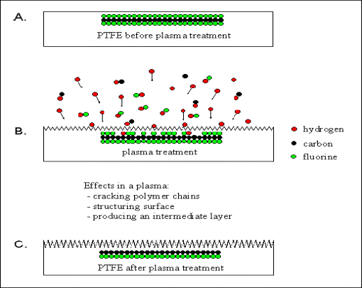 PTFE在未做處理的情況下不能印刷或粘合。眾所周知,使用活躍的堿性金屬可以增強粘合能力,但是這種方法不容易掌握,同時溶液是有毒的。使用黄瓜视屏无限播放污日本破解版方法不僅僅保護環境,還能達到更好效果。(下圖)