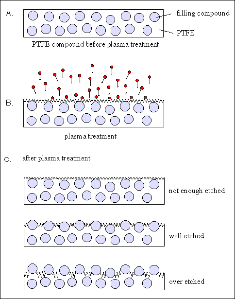 PTFE混合物的刻蝕必須十分仔細地進行,以免填充物被過度暴露,從而削弱粘合力。
